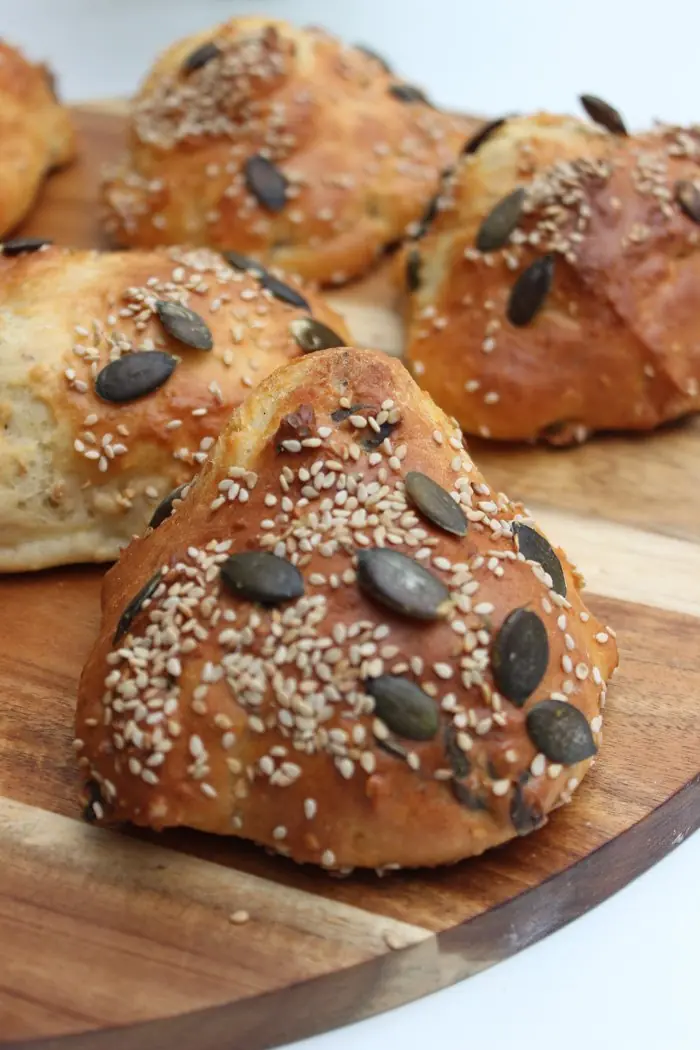 Diese Brötchen sind perfekt, um sie pur zu genießen, vielleicht noch warm aus dem Ofen. Aber sie passen ebenso gut zu herzhaften Aufstrichen wie Frischkäse oder Hummus und harmonieren auch mit süßen Begleitern wie Marmelade oder Honig. Ein echtes Allrounder-Gebäck leicht, nahrhaft und einfach lecker!