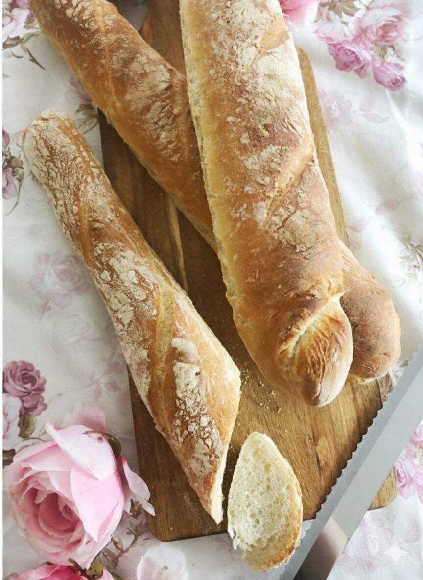 Das beschriebene Rezept ist für das Selberbacken von Baguette mit Trockenhefe