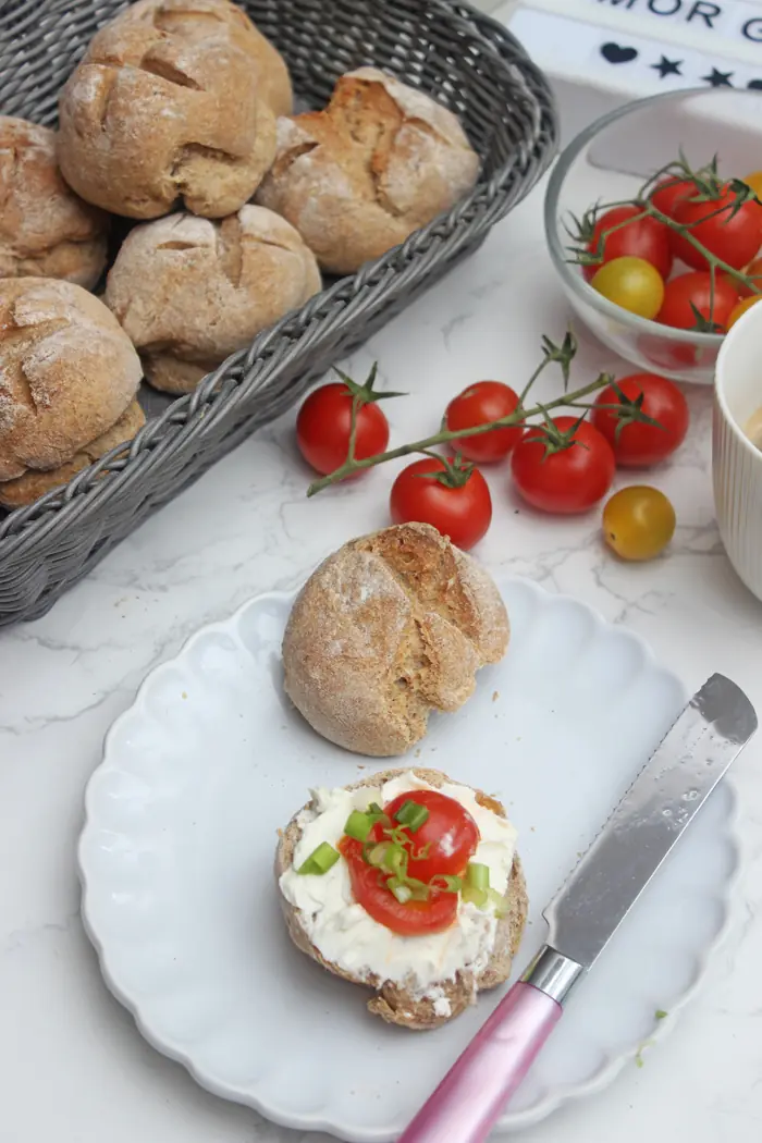 Was ist so besonders an diesem Rezept? Dieses Rezept für Dinkel-Roggen Brötchen ist besonders, da es eine Mischung aus Dinkel- und Roggenmehl verwendet und somit ein einzigartiges Aroma und eine rustikale Konsistenz ergibt. Außerdem ist es einfach zu machen und erfordert keine komplizierten Arbeitsschritte oder Zutaten. Die Brötchen sind vielseitig einsetzbar und können sowohl zum Frühstück als auch zum Abendessen oder als Beilage zu Suppen und Eintöpfen serviert werden. Zudem können sie problemlos eingefroren werden, um später genossen zu werden.