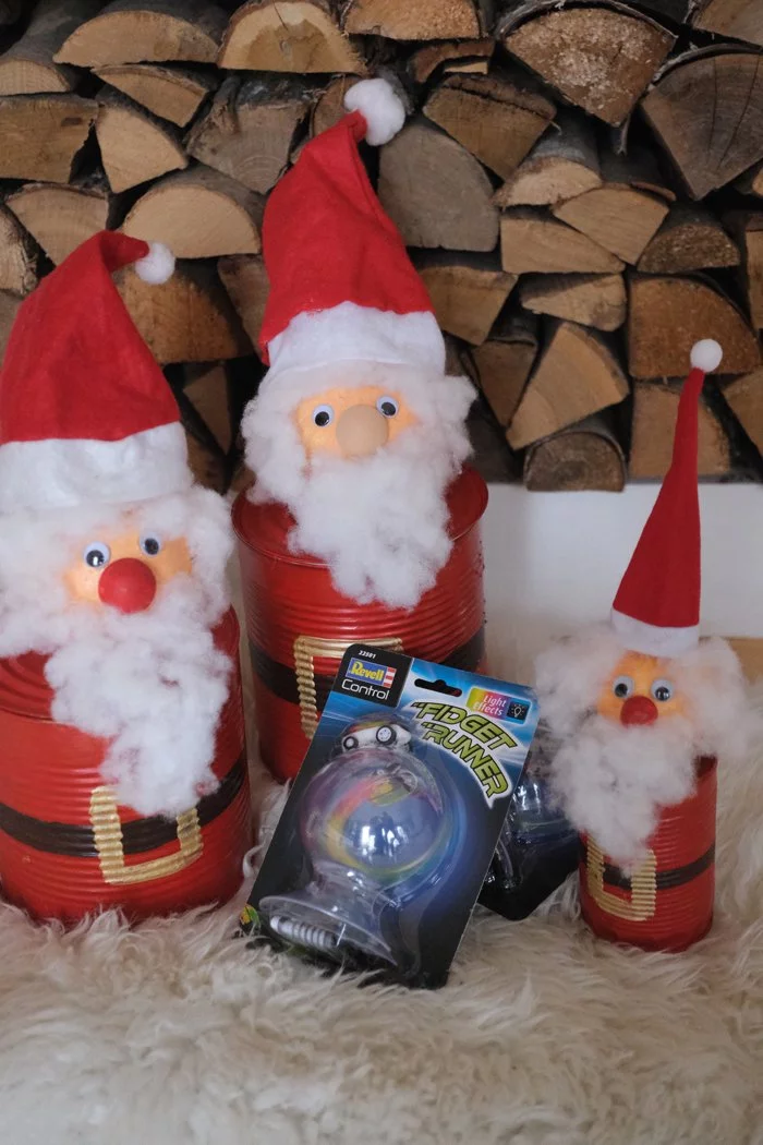 - Du kannst die Dose ganz nach deinem Geschmack dekorieren – von einem einfachen roten Mantel bis hin zu detailverliebten Verzierungen wie einem goldenen Gürtel.