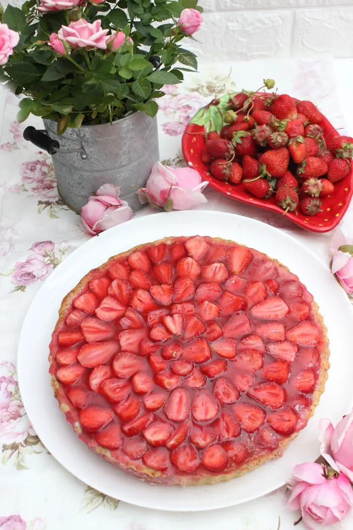Meine Erdbeer-Tarte besteht aus einem himmlischen Mübeteigboden, der mit einer süßen, cremigen Vanillecreme gefüllt und mit frischen, saftigen Erdbeeren belegt ist. Jeder Bissen ist ein Fest für die Sinne und ein Genuss für den Gaumen. Tartes sind eine elegante und vielseitige Version von Torten, perfekt für jede Gelegenheit. Mit ihrer offenen Füllung und der Option, sie mit frischen Früchten zu verzieren, sind sie ein Blickfang auf jedem Desserttisch.