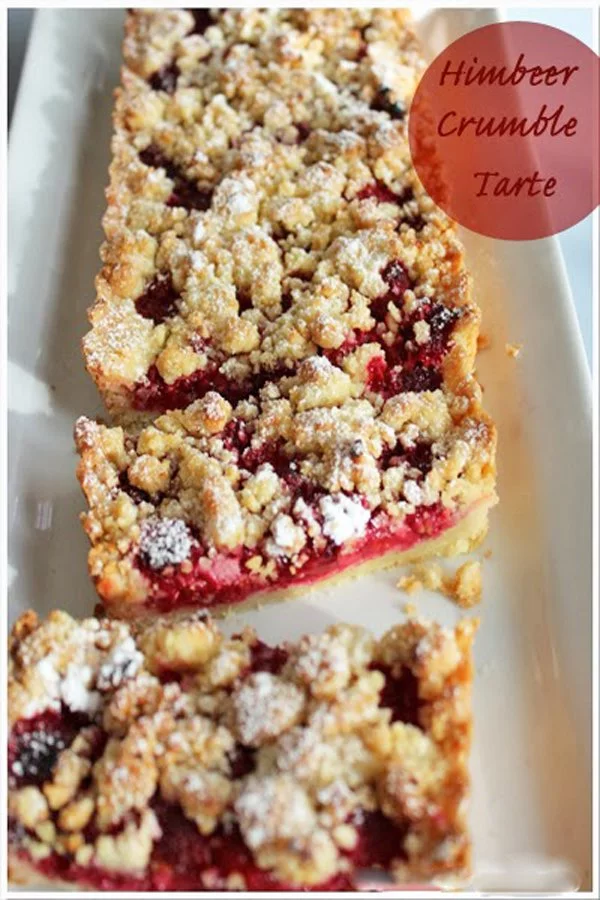 Die Himbeer-Crumble-Tarte ist ein leckerer und fruchtiger Genuss! Der knusprige Streuselteig verleiht der Tarte eine angenehme Textur und einen leicht buttrigen Geschmack. Die gefrorenen Himbeeren sorgen für eine saftige Füllung mit einer süß-säuerlichen Note, die wunderbar mit dem zarten Nussaroma harmoniert. Der Hauch von Puderzucker obendrauf gibt der Tarte eine dezente Süße und einen zusätzlichen dekorativen Touch.