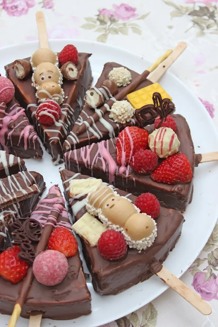 Ich bin sicher, Sie haben den Titel gelesen und zweimal geblinzelt. Ich schon. Denn Dekadenz hat einen Namen und der ist ganz sicher Käsekuchen, der in Schokolade getaucht, mit Kinderschokolade, Pralinen, Giottos, frischen Früchten (Die Auswahl der Beläge ist grenzenlos) dekoriert ist. Wenn man selbst Geburtstag hat und keine Lust hat, eine Torte zu backen… Dann sind diese Käsekuchen am Stiel ein absoluter Hit.