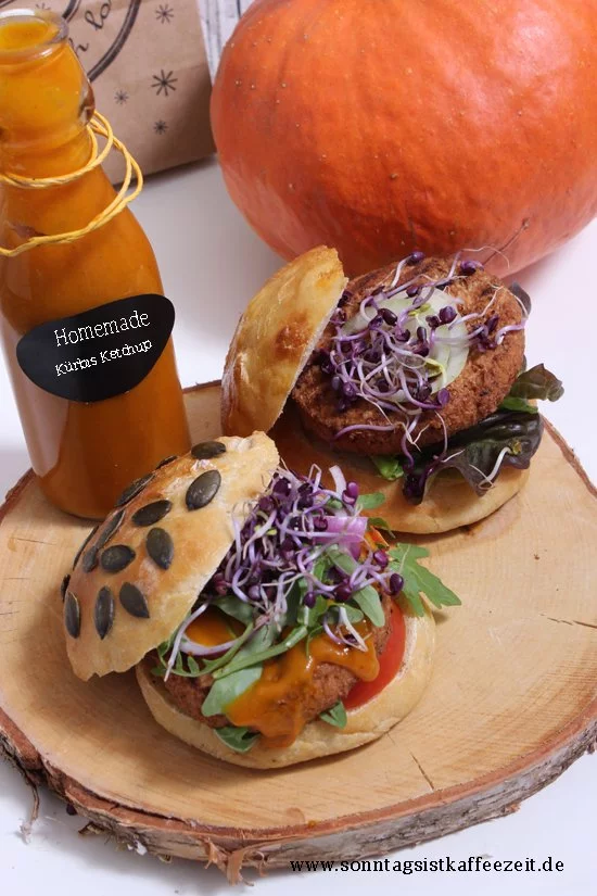 Kürbis-Ketchup mit veganen Hamburger mit Rügenwalder Mühle – Wir lieben Hamburger und am besten vom Grill. Spaghetti Bolognese ist das Lieblingsessen unserer Kinder und ein Frikadellen Brötchen mal so zwischendrin ist bei uns auch sehr beliebt. Doch muss es immer Rind- oder Schweinefleisch sein? Warum nicht mal was Vegetarisches oder sogar Veganes. Wie wäre es da mit einem Hamburger Patty von Rügenwalder Mühle und dazu ein selbst gemachtes Kürbis-Ketchup?