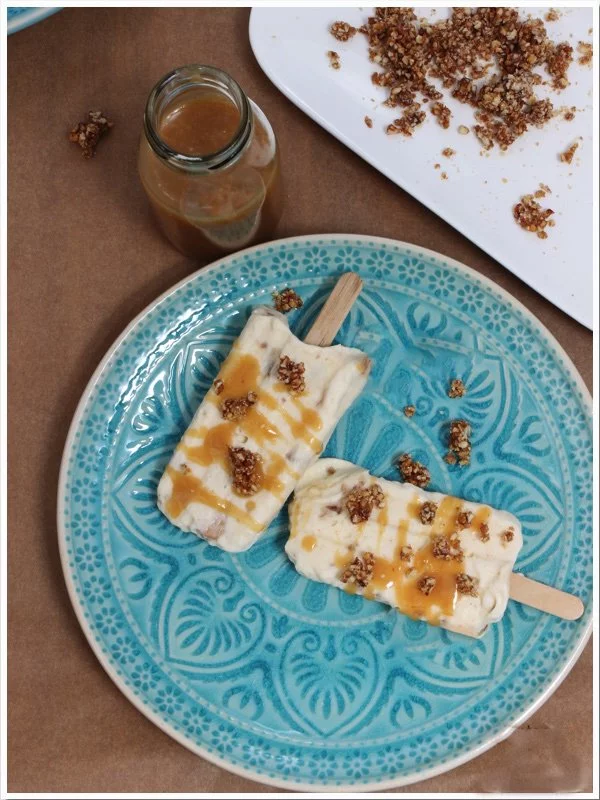 - Die Eispops erneut einfrieren, bis das Karamell fest ist.