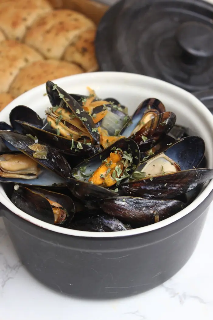 So gelingen Miesmuscheln in einer lecleren Weißweinsoße ganz sicher in nur 4 Minuten. Für alle die gerne wie ich Muscheln essen, habe ich ein supereinfaches, schnelles und leckeres Rezept. Dazu reiche ich gerne selbstgemachte leckere Knoblauch-Kräuterbutter-Brötchen oder fluffige und lockere Sesambrötchen.
