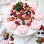 Diese Pavlova in Pink mit gemischten Beeren ist anmutig, schön und romantisch. Ein perfektes Dessert für den Muttertag, Valentinstag, Geburtstags- oder Dinner-Gäste! Es ist außen knusprig mit zarten Baisertürmchen aufgetürmt und im inneren mit cremigen und köstlicher Mascarpone-Rhabarbercurd-Creme und viel frischem Obst. Wie du das Rharbarercurd Rezept herstellen kannst, habe ich vor hier kurzen vorgestellt.