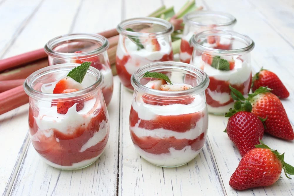 Rhabarber-Erdbeer-Kompott mit Skyr Desserts im Glas so einfach