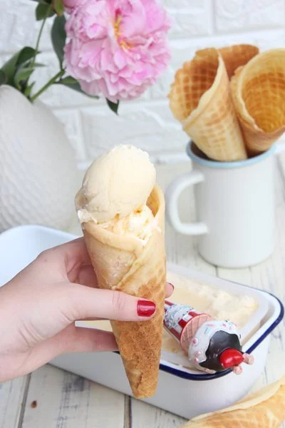 Besitzt Du keine Eismaschine? Ärgere Dich nicht, dieses Rezept kann auch mit einem Gefrierschrank und ein wenig Zeit gemacht werden. So gehen übrigens diese selbst gemachten Eiswaffeln, die du selbst machen kannst